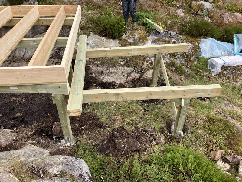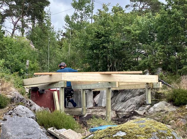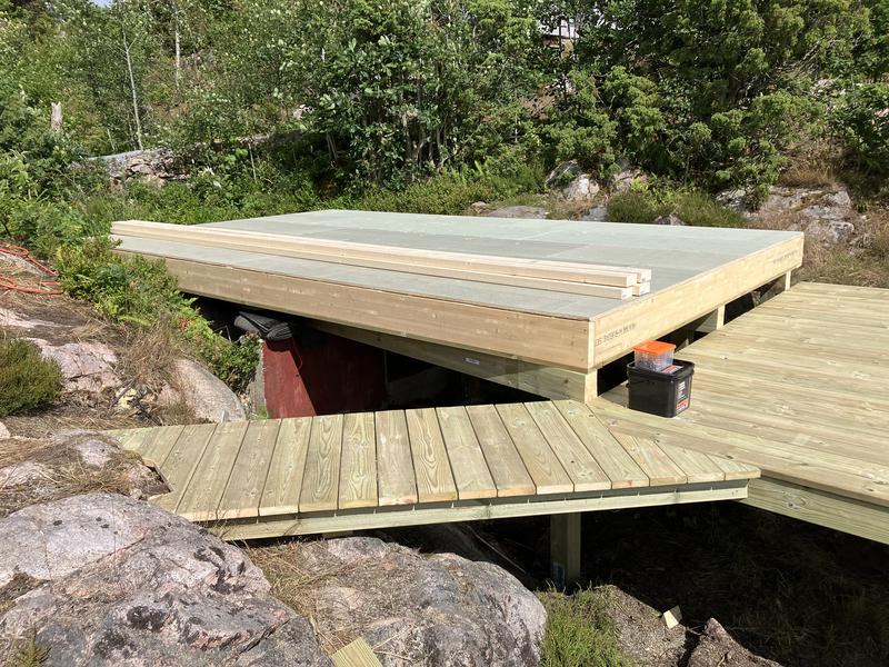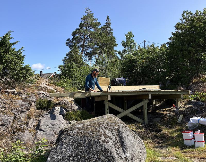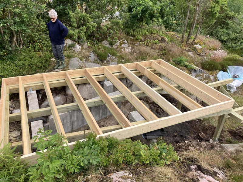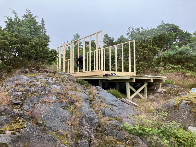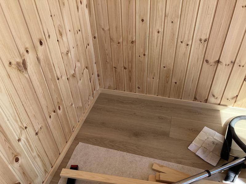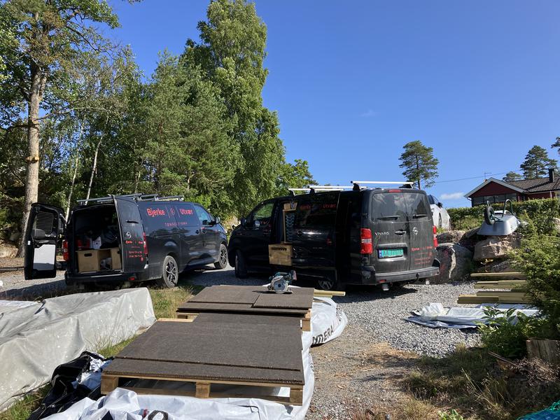 Dag 12: Rekkverk på terrassen, trapp, lister, ventiler, parkett i det ene rommet...